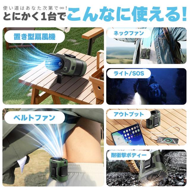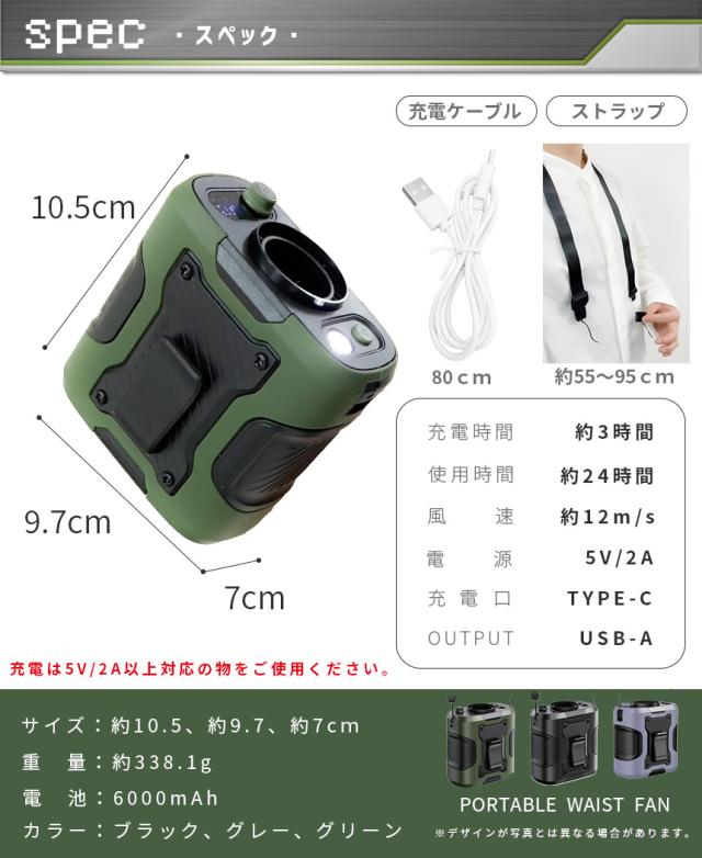 電池残量と風力強度を表示できます。Type-cのインタフェースで急速に充電でき、約3時間でフル充電できます。6000mAh大容量の内蔵電池を採用し、最大24時間連続使用可能!外出にもお気軽に使用いただけます。パソコン、車載USB充電器、モバイルバッテリーで充電しながら使用もできますので、お出かけ時や充電ができない場所でも安心です。(5V/2A以上で充電してください。)
