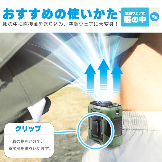 ・ベルトに挟んで服の中を涼しく、まるで空調ウェアタイプ