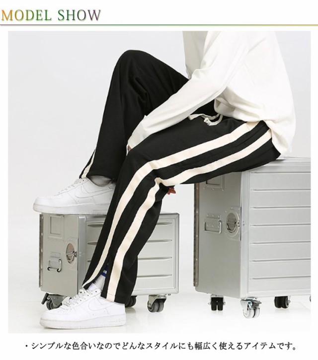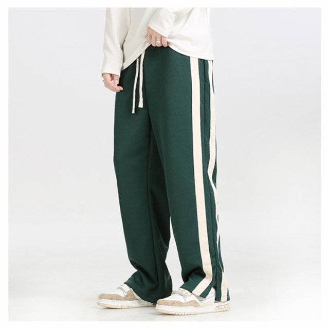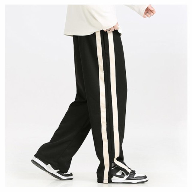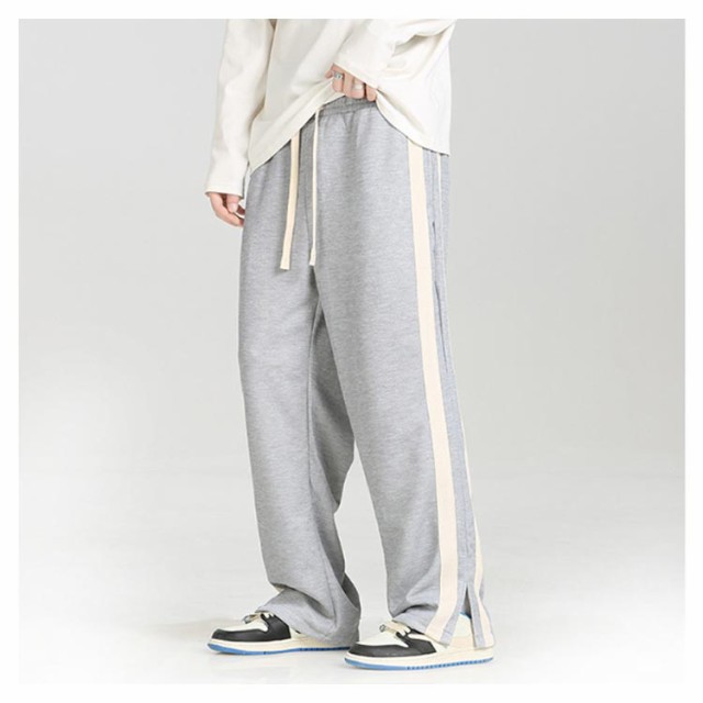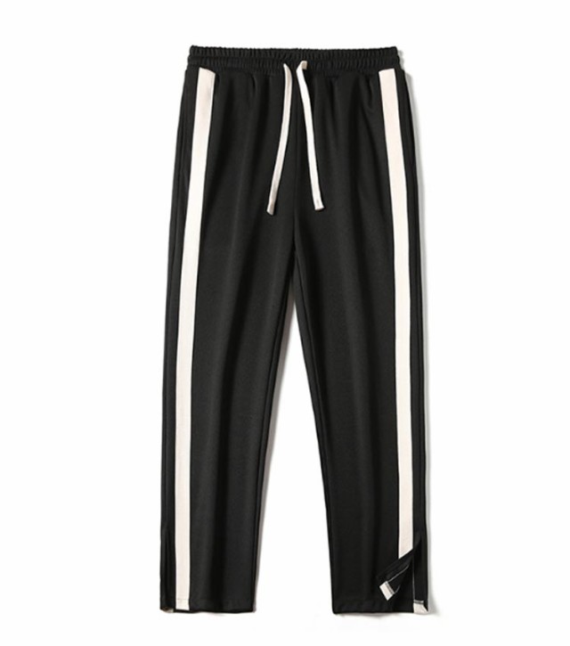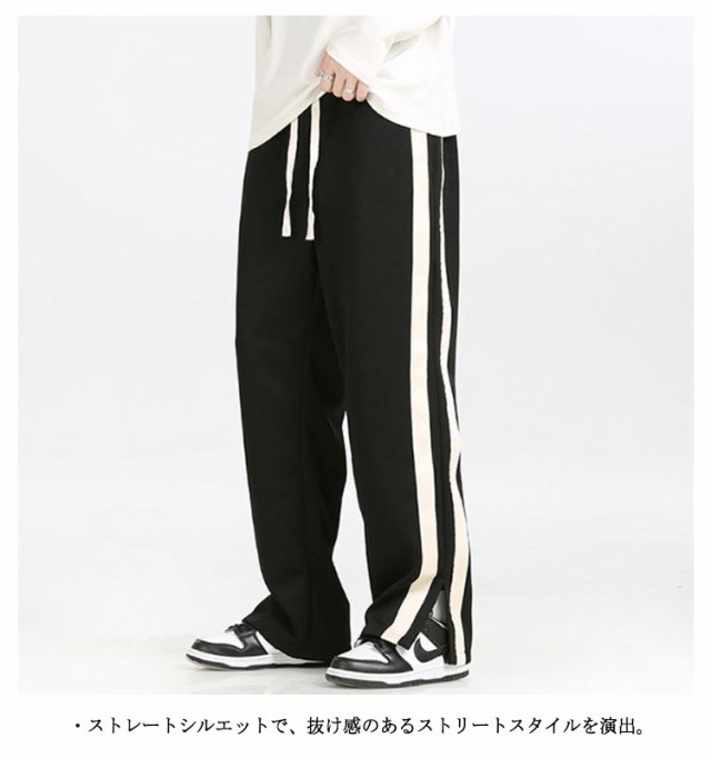 スウェットパンツ トラックパンツ パンツ サイドライン ジャージ トラックパンツ メンズ 裾スリット ストレートパンツ ウェストゴム イージーパンツ ポケットあり ストリート系 ダンス系 ヒップホップ系 スポーツミックス カジュアル 春