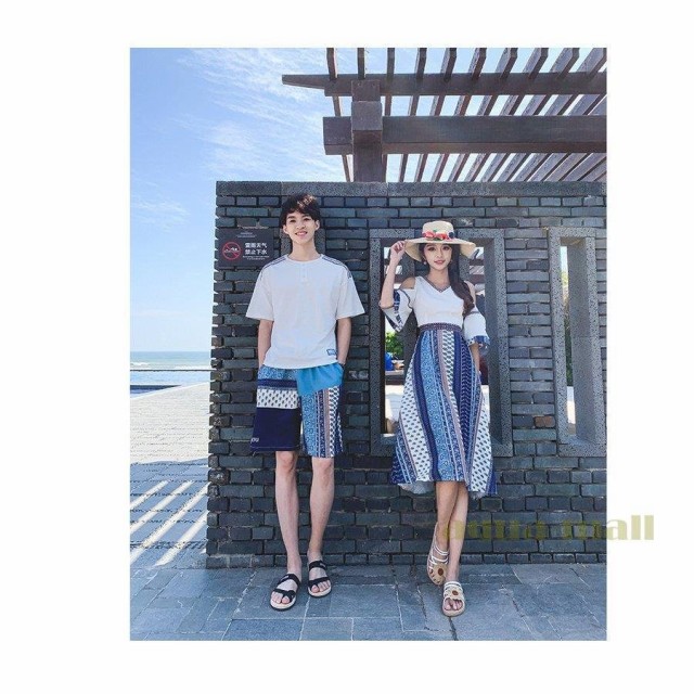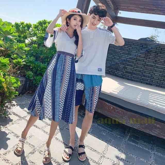 カップル ペアtシャツ 半袖 ペアルック お揃い 服 夏 花柄 パンツ 韓国ファッション デート おでかけコーデ おそろ オルチャンファッション
