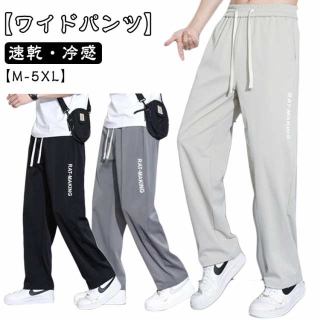 夏 ストレートパンツ 速乾 薄手 ワイドパンツ メンズ ゆったり 無地 ワイド スラックス 涼しい ロングパンツ 大きいサイズ アイスシルクパンツ スポーツ アウトドア ストリート 長ズボン カジュアル ボトムス M-5XL