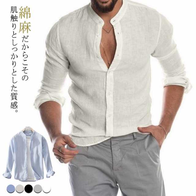 羽織 綿シャツ カジュアルシャツ メンズ 紳士服 長袖 カジュアル 春夏 男性 薄手 シャツ ビジネス 綿 ノーカラーシャツ トップス おしゃれ 大きいサイズ シャツ 大人 開襟シャツ 大きいサイズ メンズファッション 部屋 ノーカラーシャツ デート 通勤 海辺 ギフト プレゼント