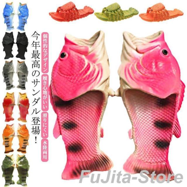サンダル おもしろデザイン シャワーサンダル ビーチサンダル バスルームサンダル 親子お揃い エビ柄 魚柄 スリッパ ロブスター エビ ザリガニ 海老