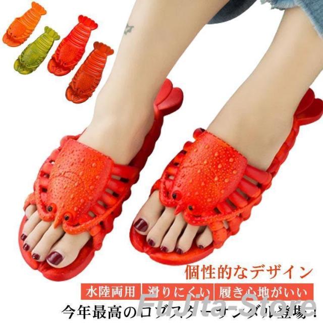 シャワーサンダル ビーチサンダル サンダル おもしろデザイン バスルームサンダル 親子お揃い エビ柄 スリッパ ロブスター エビ ザリガニ 海老 蝦
