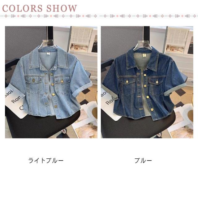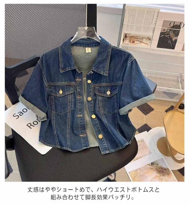 半袖 デニム ジャケット レディース ショート デニムジャケット カジュアルジャケット 春 夏 アウター 薄手 デニム トップス 羽織り 大きいサイズ ゆったり 体型カバー おしゃれ