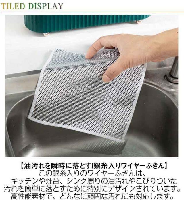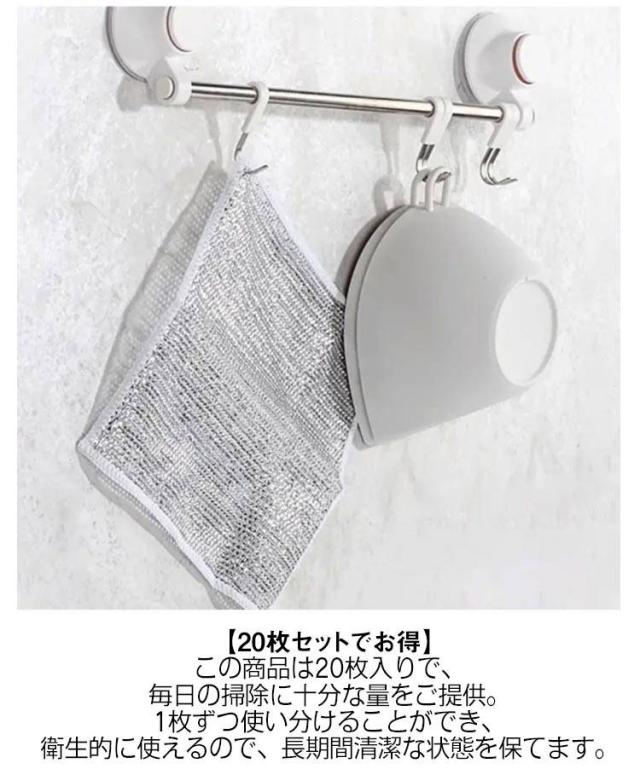 ワイヤーふきん 20枚セット 銀糸入り 両面使用 キッチンクロス 送料無料 お手入れ簡単 吸水 リバーシブル 耐久性 防油 耐熱 繰り返し使用可能 キッチン掃除 食器洗い ふきん 速乾 リバーシブルクロス 掃除雑巾 キッチン雑巾 風呂掃除