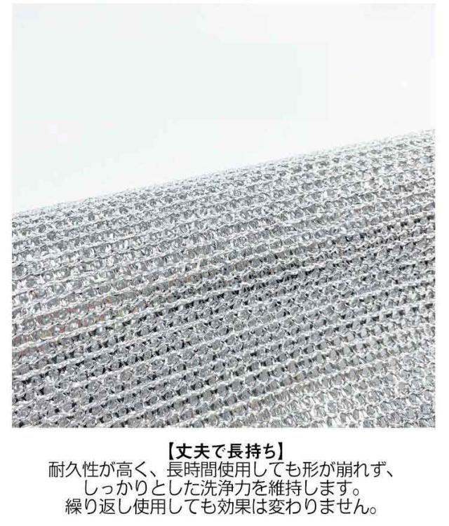 | 【油汚れを瞬時に落とす!銀糸入りワイヤーふきん】 この銀糸入りのワイヤーふきんは、キッチンや?台、シンク周りの油汚れやこびりついた汚れを簡単に落とすために特別にデザインされています。高性能素材で、どんなに頑固な汚れにも対応します。 【油が付きにくい特殊加工】 銀糸の特殊な構造により、油がほとんど付着せず、使うたびにきれいな状態を保ちます。キッチンやガスレンジ周りの掃除が簡単になり、掃除後の手間を減らします。 【20枚セットでお得】 この商品は20枚入りで、毎日の掃除に十分な量をご提供。1枚ずつ使い分けることができ、衛生的に使えるので、長期間清潔な状態を保てます。 【多用途に対応】 このワイヤーふきんは、キッチンの洗い物だけでなく、鍋やフライパンの洗浄、シンクの掃除など様々な場面で活躍します。油汚れや焦げ付きの落ちにくい調理器具にも効果的です。 【丈夫で長持ち】 耐久性が高く、長時間使用しても形が崩れず、しっかりとした洗浄力を維持します。繰り返し使用しても効果は変わりません。 | |