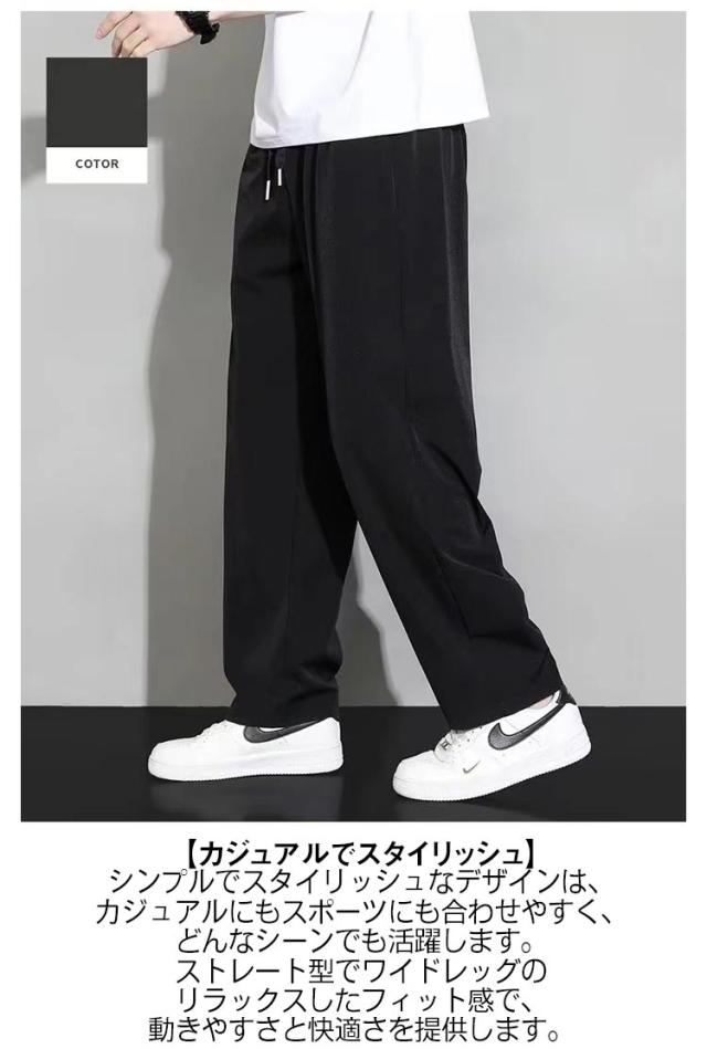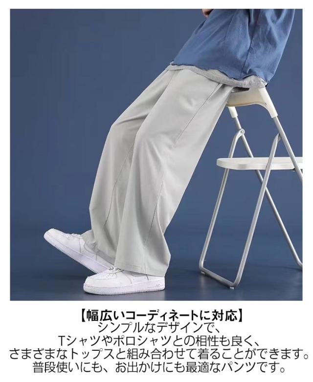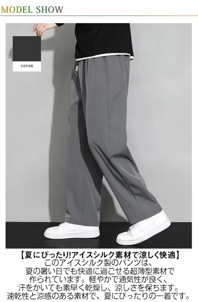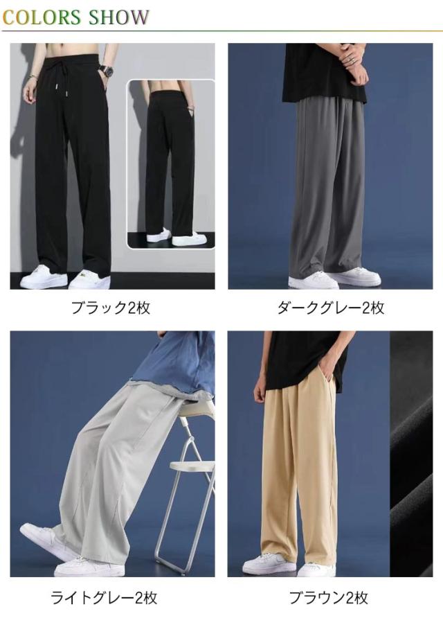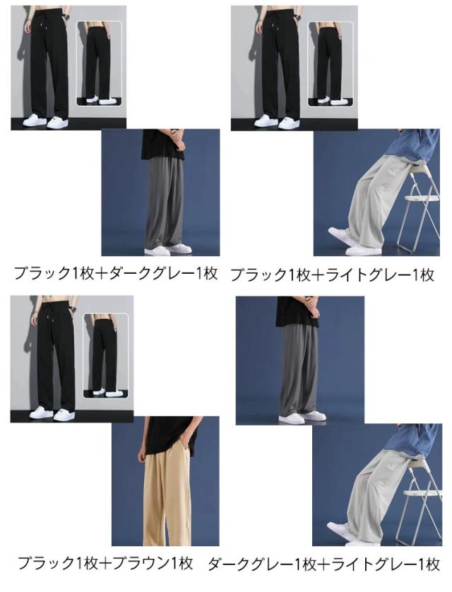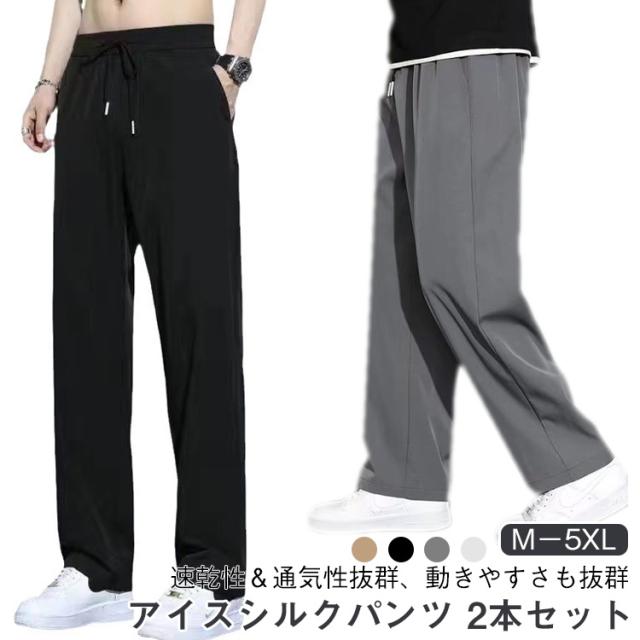 【2本セット】アイスシルクパンツ メンズ 冷感パンツ ワイドパンツ メンズ ズボン 接触冷感 夏用 イージーパンツ 涼しい 速乾 スラックス 軽快 ズボン ゆったり ボトムス 大きいサイズ ストレートパンツ オフィスカジュアル ロングパンツ M−5XL 父の日 ギフト