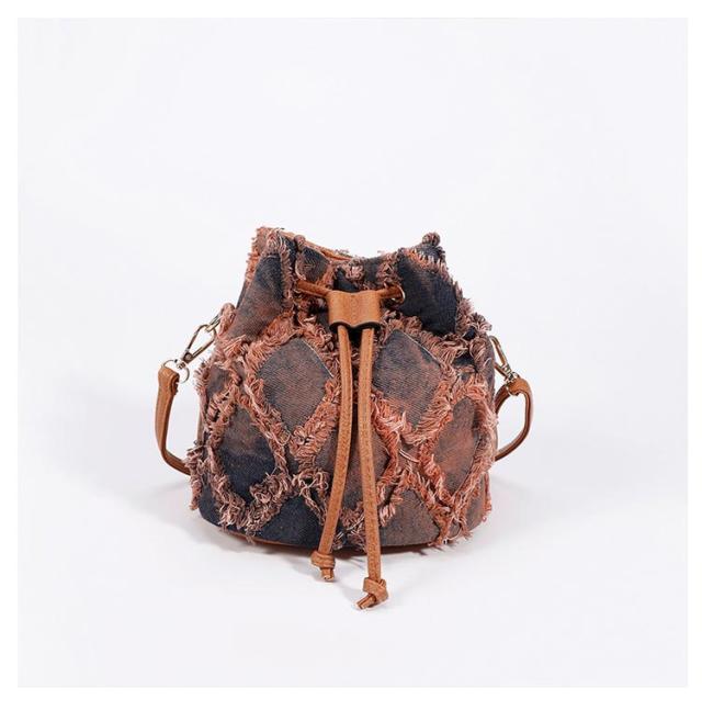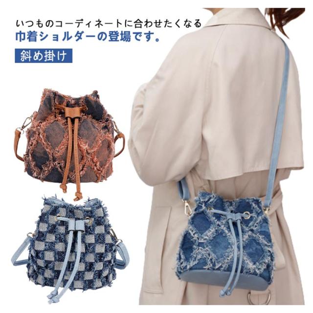 デニムバッグ 巾着バッグ デニム ショルダーバッグ レディース ハンドバッグ 肩掛けバッグ デニムバッグ 巾着バッグ ショルダー 斜め掛け 花火 浴衣バッグ 軽いバッグ 軽量 ミニバッグ 大容量 ブルー ブラウン ブラック チェック柄