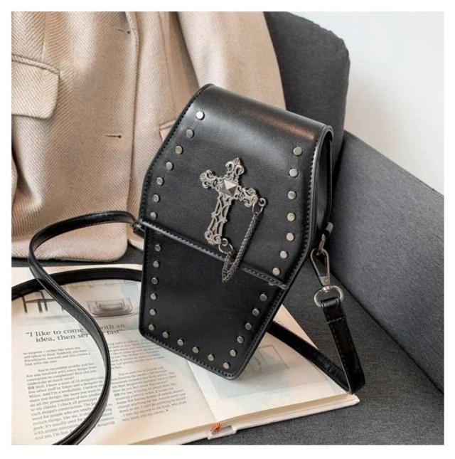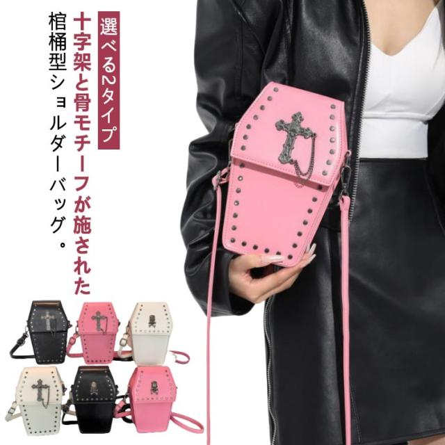 棺型 ミニバッグ 十字架 骨 選べる2タイプ ショルダー ボディバッグ ユニセックス ロック ロリータ ビジュアル系 ヴィジュアル系 V系 ダーク ライブ 舞台 ステージ 衣装 コスプレ イベント 服 ハロウィン 仮装