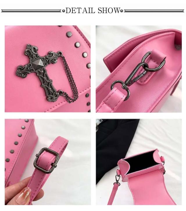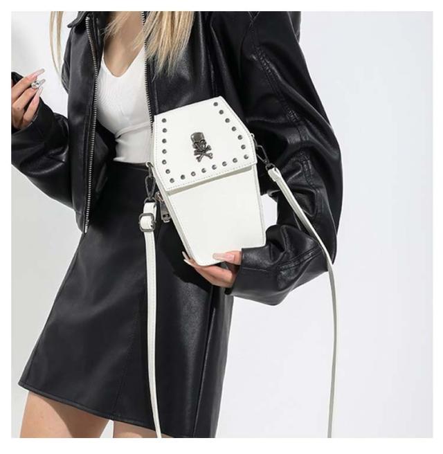| 十字架と骨モチーフが施された棺桶型ショルダーバッグ。 硬い質感で高級感のあるハードレザーを使用。 ロック、ゴシックファッションのコーデに◎ スマホやお財布などの必需品をコンパクトにまとめて持ち運びすることができます。 コーディネートのアクセントとしても活躍してくれるアイテムです。 | |