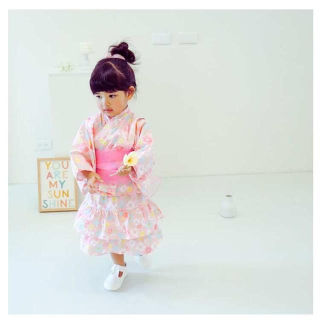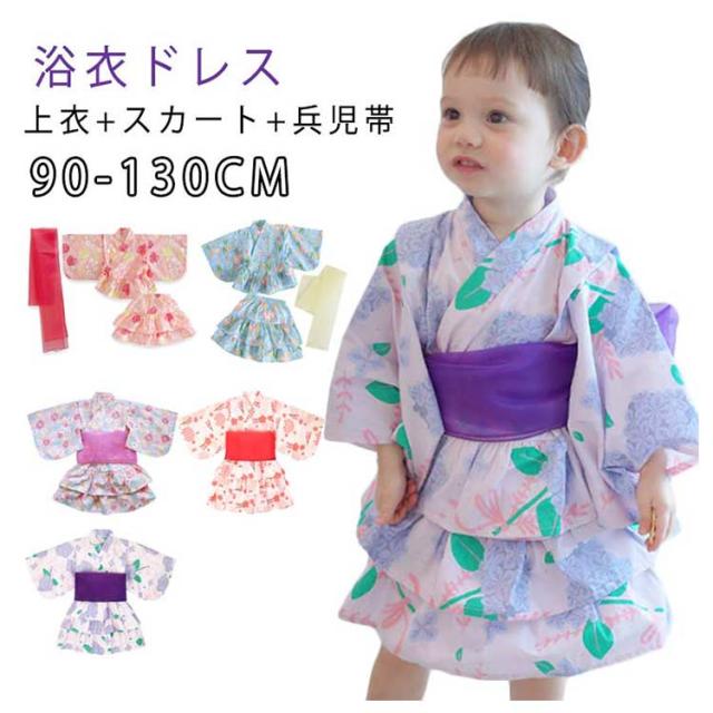 浴衣ドレス 子供 女の子 3点セット 上衣+スカート+兵児帯 着物 子供服 キッズ 花火大会 蝶結び ガールズ 可愛い 浴衣 夏祭り 夕涼み会 お洒落 花柄 和柄 和服 プレゼント 可愛い 送料無料