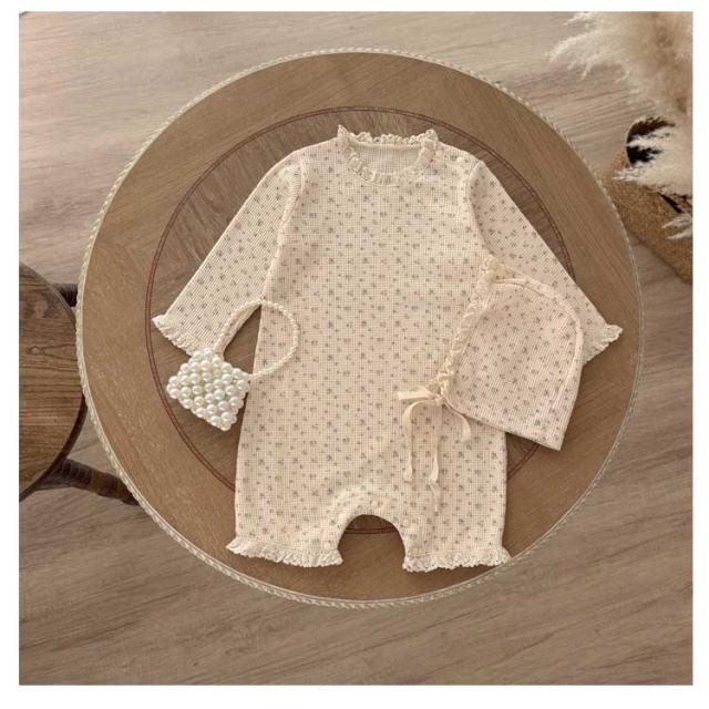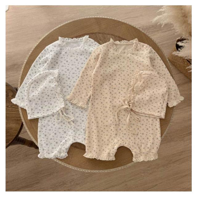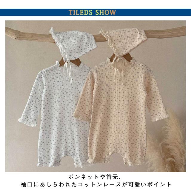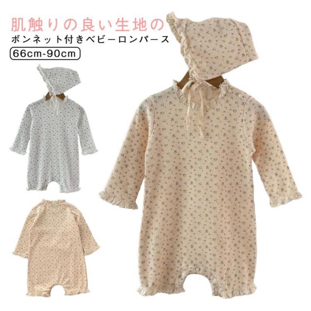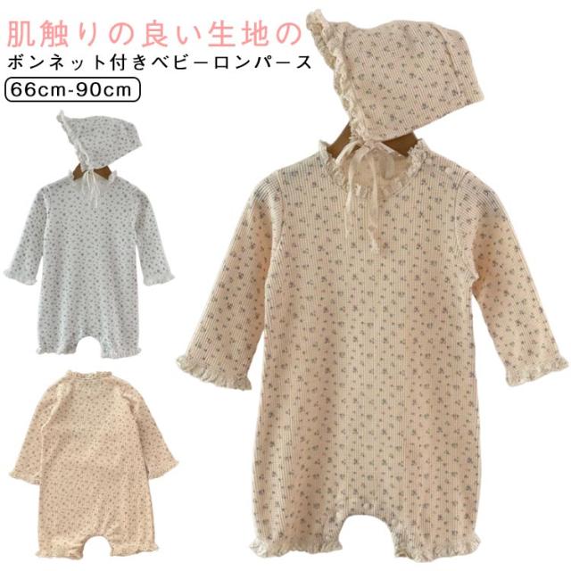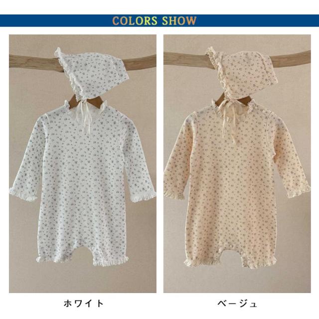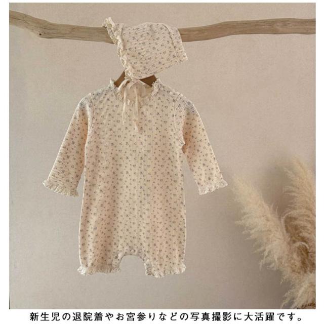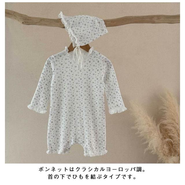 ベビー ロンパース セレモニードレス ボンネット付き 花柄 男の子 女の子 春夏秋 新生児 赤ちゃん 退院着 退院祝い セレモニードレス お宮参り 春秋 ロンパース ベビー服 キッズ 子供 出産準備 百日祝い 記念日 ベージュ