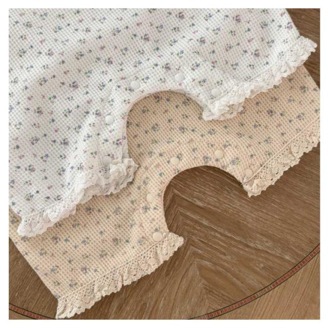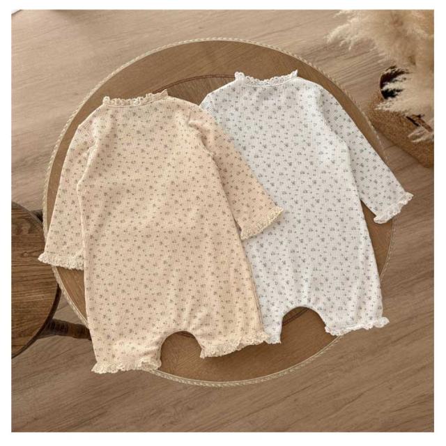 | 肌触りの良い生地のボンネット付きベビーロンパース ボンネットや首元、袖口にあしらわれたコットンレースが可愛いポイント ボンネットはクラシカルヨーロッパ調。首の下でひもを結ぶタイプです。 新生児の退院着やお宮参りなどの写真撮影に大活躍です。 | |