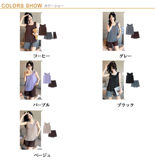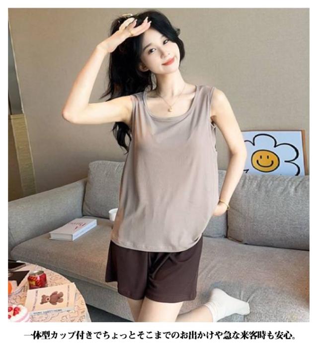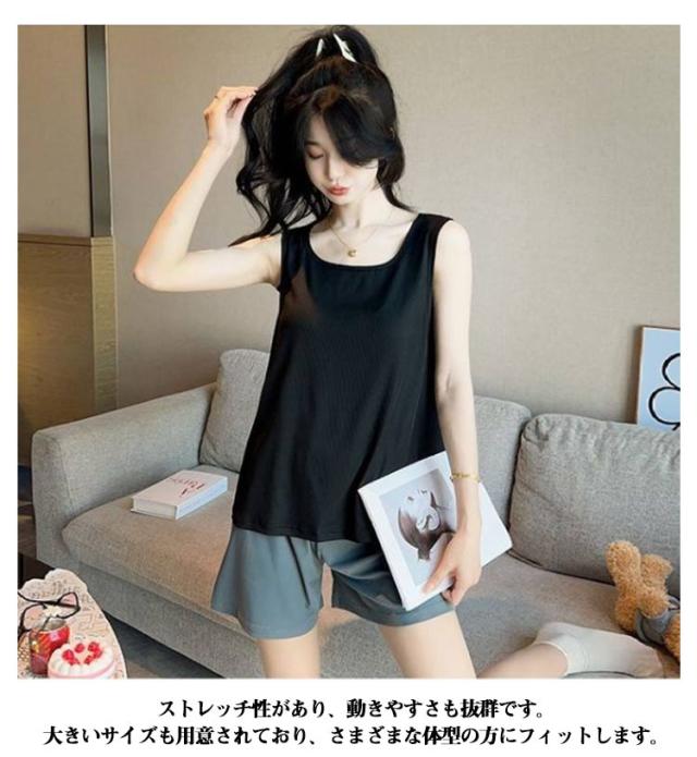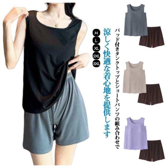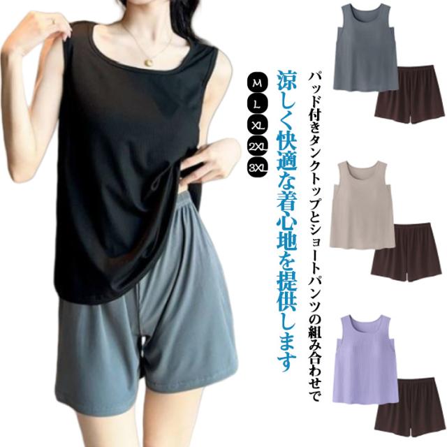 ルームウェア パッド付き 2点セット 上下セット ナイトウェア レディース 春夏秋 パジャマ タンクトップ 涼しい ショートパンツ 薄手 ゆったり 部屋着 寝巻き 寝間着 女性 大きいサイズ ストレッチ 通気性 柔らか 薄手 ゆったり 大きいサイズ