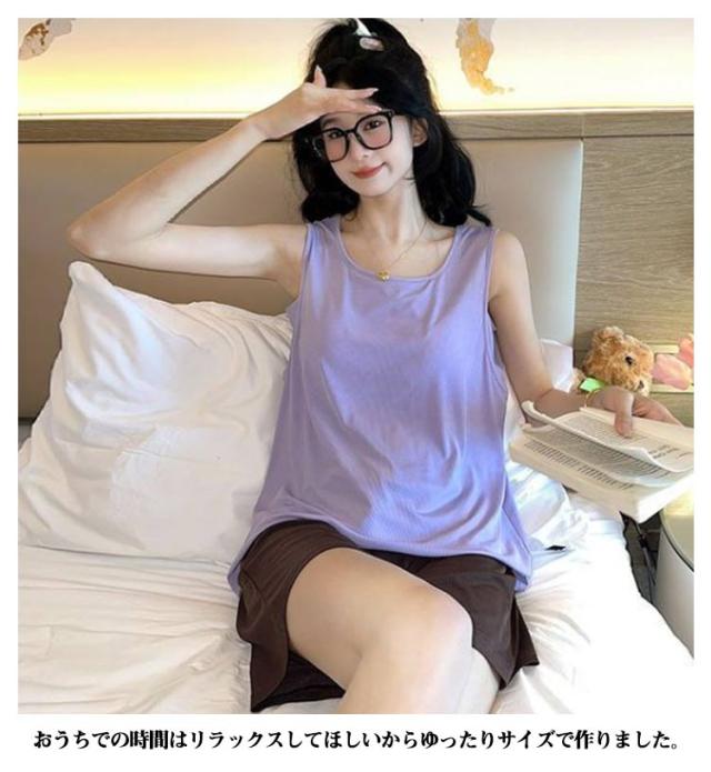 | パッド付きタンクトップとショートパンツの組み合わせで、涼しく快適な着心地を提供します。 薄手でゆったりとしたデザインは、通気性と柔らかさを兼ね備え、肌に優しい素材を使用しています。 ストレッチ性があり、動きやすさも抜群です。 大きいサイズも用意されており、さまざまな体型の方にフィットします。 おうちでの時間はリラックスしてほしいからゆったりサイズで作りました。 一体型カップ付きでちょっとそこまでのお出かけや急な来客時も安心。 | |