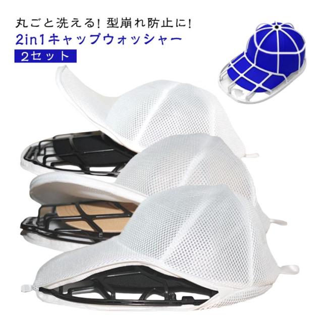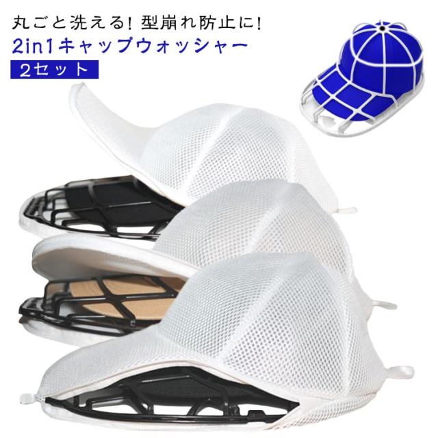 【2セット】 2in1 キャップウォッシャー 帽子 洗濯ネット キャップ ウォッシャー ホルダー ドラム式 洗濯機 対応 衝突防止 型崩れ防止 大人用 乾燥機 子供用 吊り下げ 収納 軽量 通学帽 野球帽 ピークドキャップ ヒップホップハット