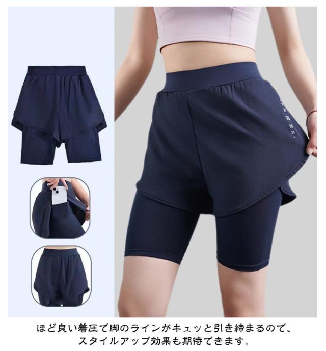 ヨガウェア レギンス 5分丈 ヨガレギンス ショートパンツ付き レディース ヨガパンツ ショート丈 ホットヨガ ピラティス ヨガ ジム フィットネス パンツ ショートレギンス ショートパンツ一体型 【送無】
