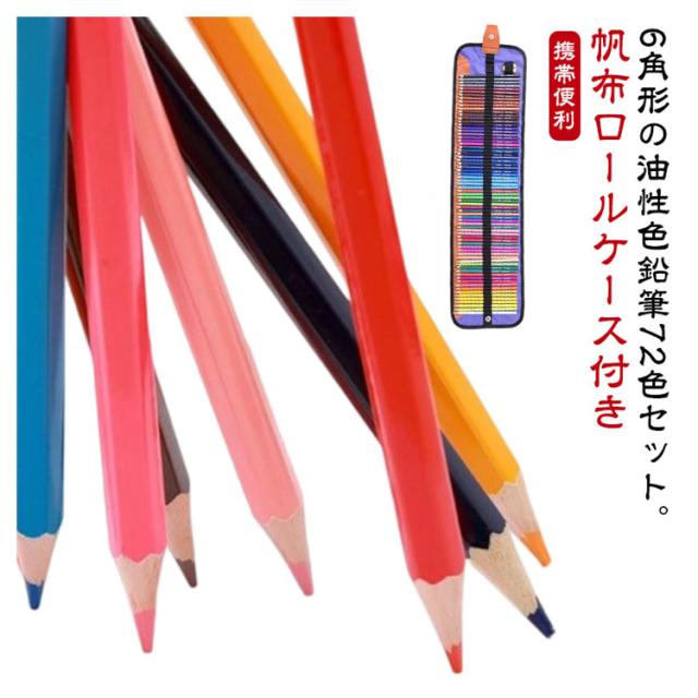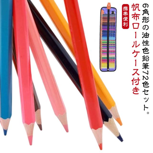6角 油性 色鉛筆 72色 セット ロールケース 収納ケース付き 子供 小学生 お絵かき 大人 塗り絵 6角色鉛筆 画材セット アート鉛筆セット 絵画 イラスト スケッチ 鉛筆削り付 持ち運び 携帯便利 いろえんぴつ 【送料無料】