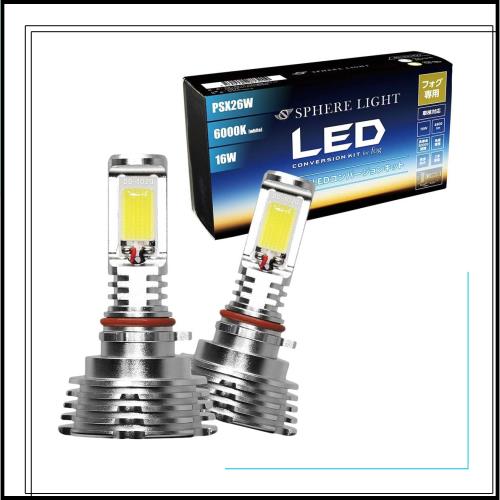 スフィアライト フォグランプ LED 車用 PSX26W 6000K ホワイト 4800lm 12V 車検対応 ハイエース レジアスエース ファンレス 簡単取付 ノ