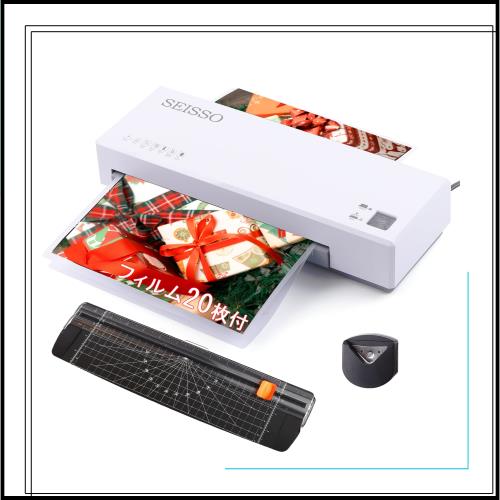 ◆商品名:ラミネーター a4対応 ラミネート機械 3点セット 裁断機 角取り器付 ラミネートフィルム 20枚付 2分間ウォームアップ 詰まり防止レバー搭