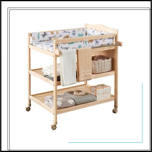 ◆商品名:木製 ベビーケア おむつ交換台 新生児 オムツ 交換台 ベビーベッド おむつ替えシート キャスター付 幼稚園 保育園 キャスター付 収納棚付