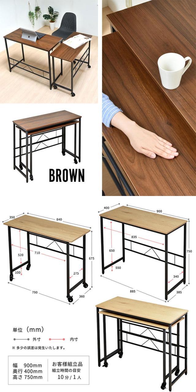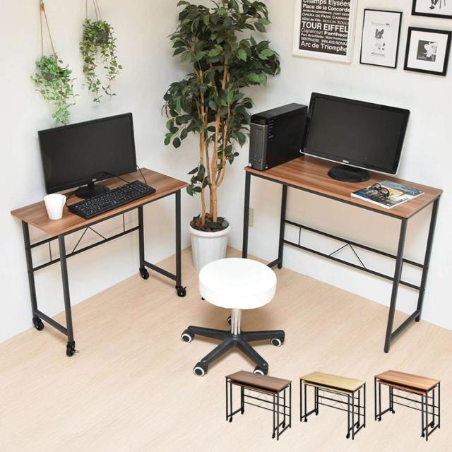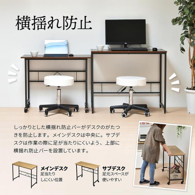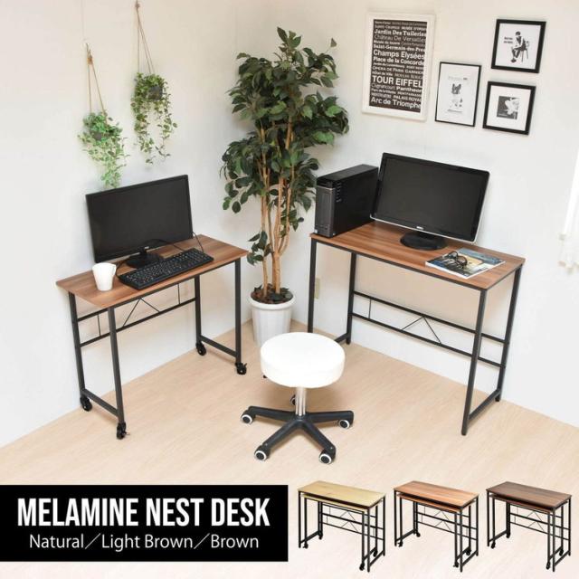 メラミン ネストデスク 自由レイアウト可能なメラミン天板ワークデスクセットネストデスク メラミン天板 デスクセット サブデスク付き ワークデスク キャスター付きデスク【送料無料】