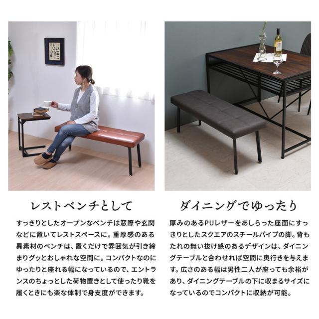 モダンクラブダイニングベンチ PUレザー×スチール脚のコンパクト&高耐荷重ベンチダイニングベンチ PUレザーベンチ スタイリッシュベンチ モダンデザイン コンパクトベンチ【送料無料】