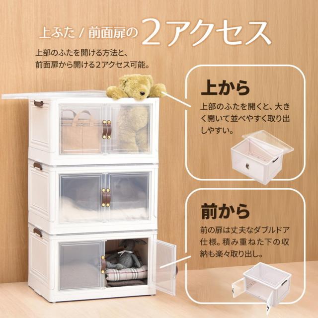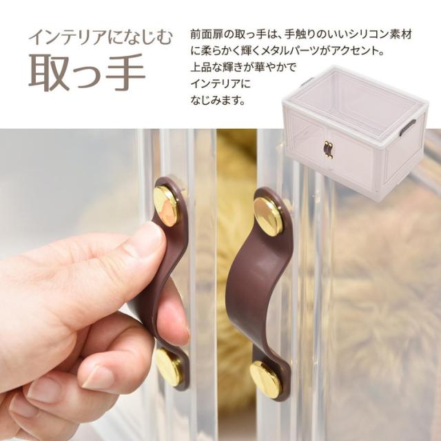 ■半透明で中身が見える可愛い収納ボックス。普通のプラスチック収納ボックスはリビングなどのお部屋には馴染みづらいですが、この収納ボックスは取手に立体感を出したり色使いにこだわったり、デザインを施すことで、キャビネットの様にリビングなどでお使いいただいてもおしゃれでお部屋に馴染みます。底部分にはキャスターがついており、移動が楽なのでお掃除する時にも便利です。また積み重ねができる仕様になっているので、お部屋のスペースやご利用になりたい容量などに合わせて積み重ねてお使いいただける点や、天板と前扉が半透明なので中身がすぐわかるという点もおすすめです。