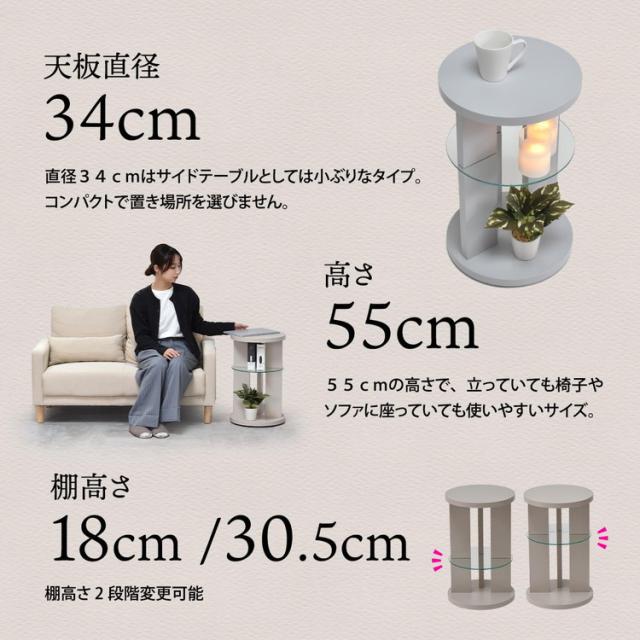 Noko ラウンドサイドテーブル おしゃれで抜け感あるアシンメトリーデザイン&ガラス棚ラウンドサイドテーブル 強化ガラス 棚付き サイドテーブル 北欧風 おしゃれ 小型テーブル【送料無料】