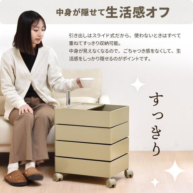 360回転ワゴン 4段 見渡せる引き出し収納 アースカラー360度回転ワゴン 回転式収納ワゴン 4段収納ワゴン 引き出し回転ワゴン ワゴン収納 おしゃれ収納 アースカラー家具【送料無料】
