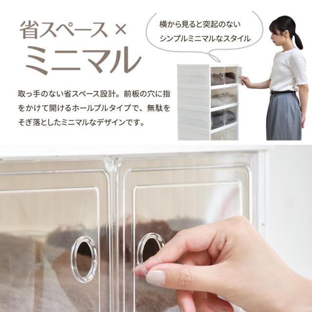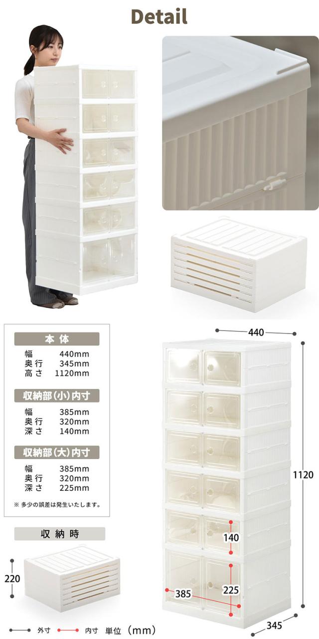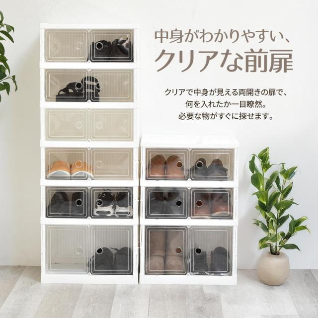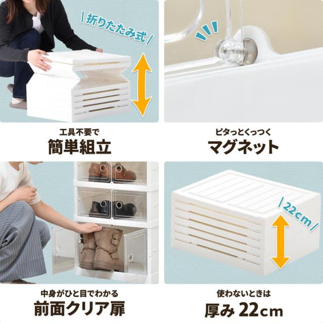 ■透明な前扉で中身が見える多目的収納ボックスです。中身が見えるのでお気に入りのフィギュアや推し活グッズを並べたりするコレクションケースとしての使い方や、シューズラックとしての使い方など様々な用途で活用できます。積み重ね(スタッキング)機能もありますので、必要に応じて積み重ねて頂くと抜群の収納力になります。折りたたみ式のボックスなのでネジやボルトといった部品で組立する必要もなく、蛇腹式になっている商品を広げてから背板と前扉を起こすだけで組立ができる簡易設計なので、女性でもらくら組立していて頂けます。