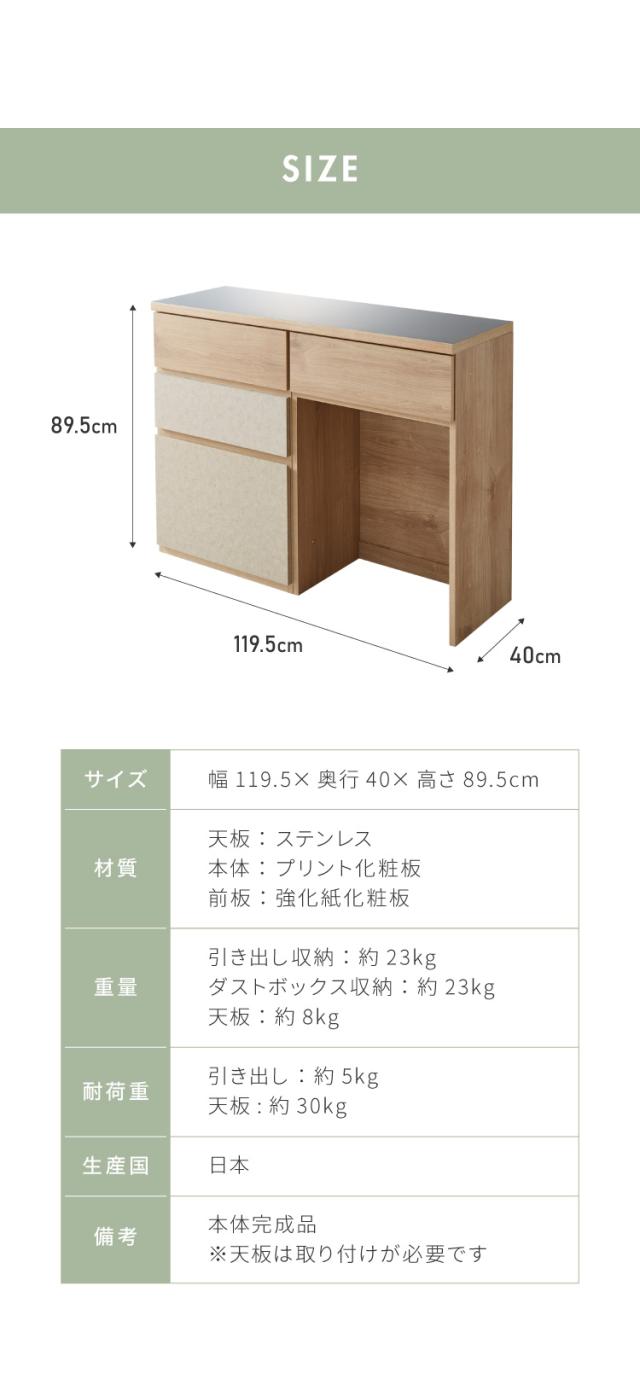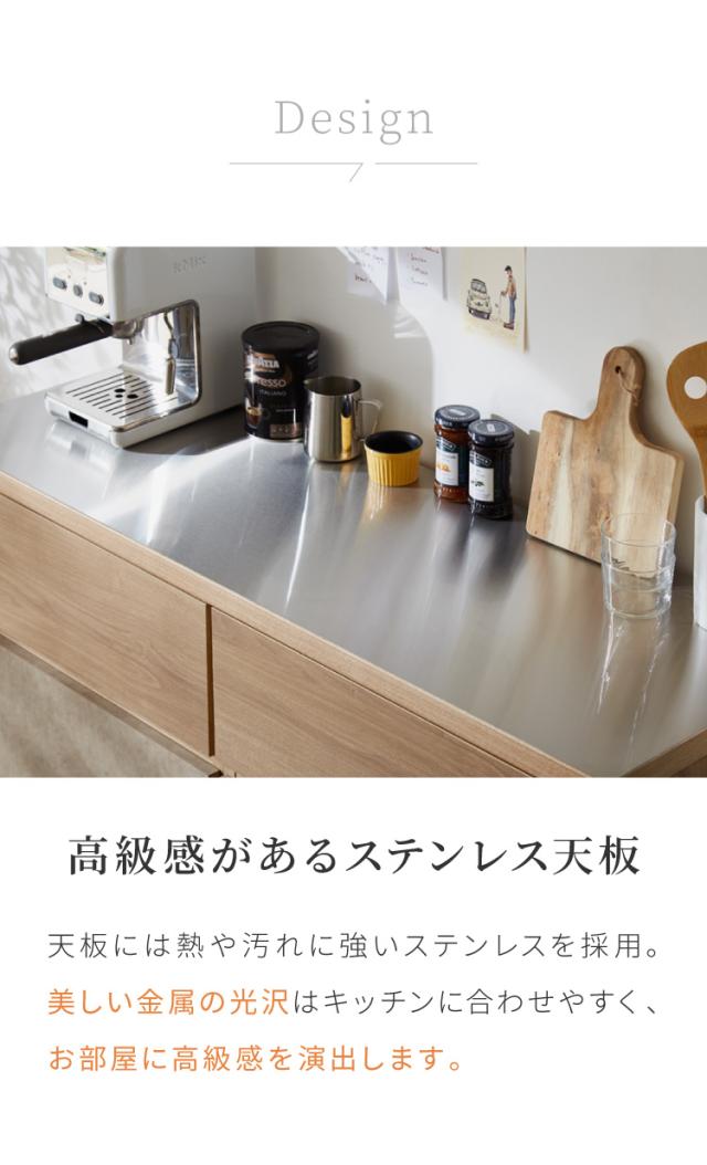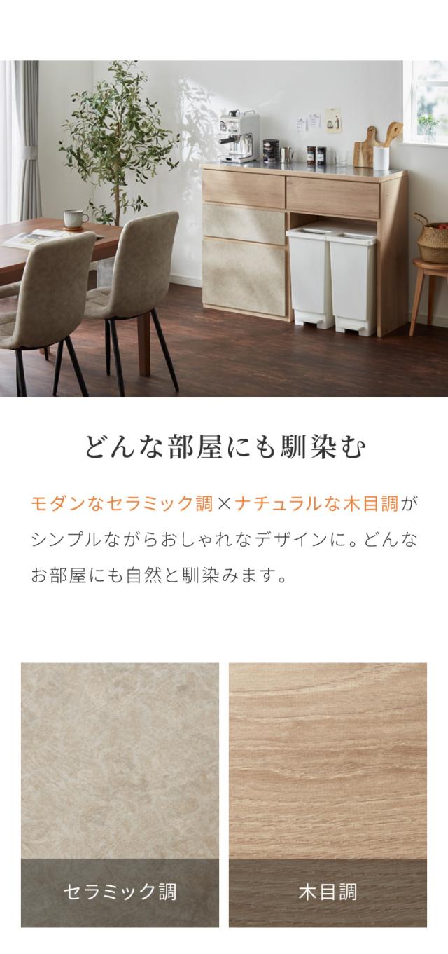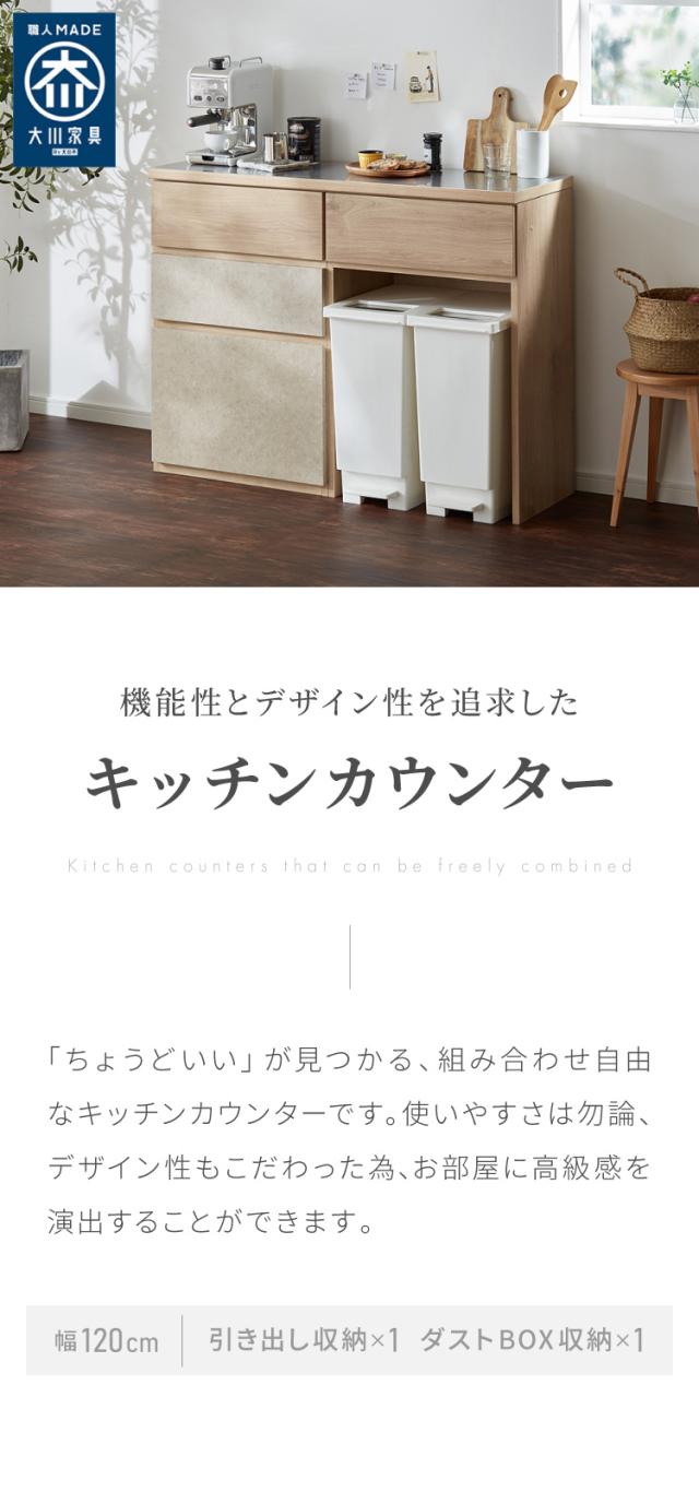 キッチンカウンター 幅120 完成品 日本製 ゴミ箱 引き出し ステンレス 天板 キッチンラック キャビネット サイドボード ダストボックス モダン ナチュラル セラミック調 国産 大川家具(代引不可)【送料無料】