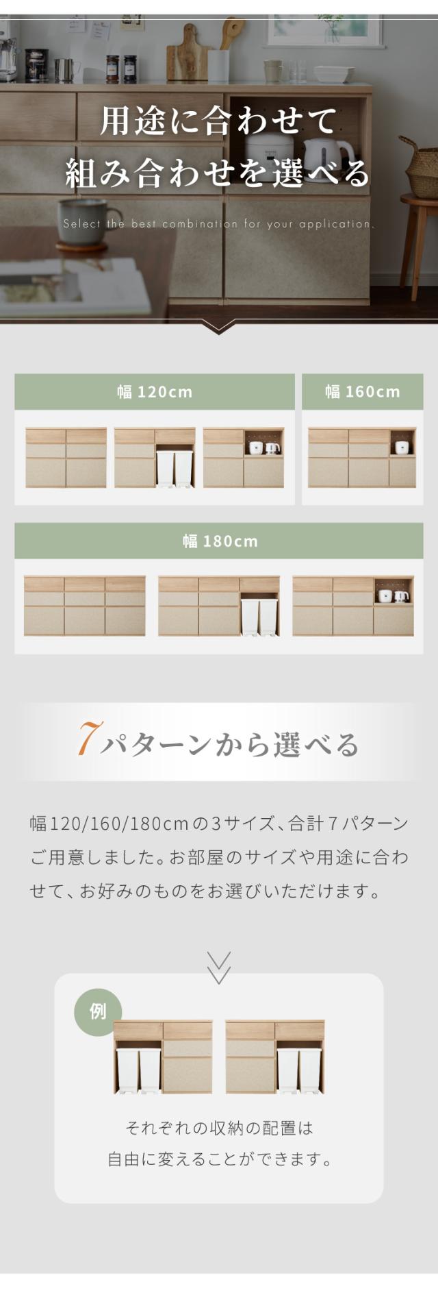 幅120/160/180の3サイズ、合計7パターンの中からお選びいただけます。