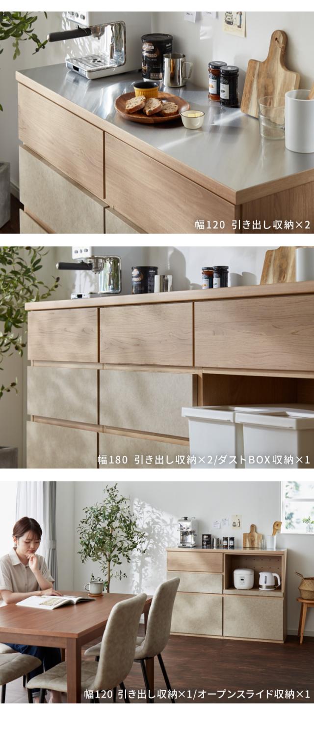 幅120cm/引き出し収納×2 | 幅120cm/引き出し収納×1/レンジ台×1 |