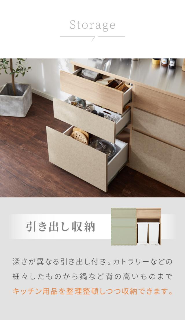 組み合わせを自由に選べるキッチンカウンター収納です。