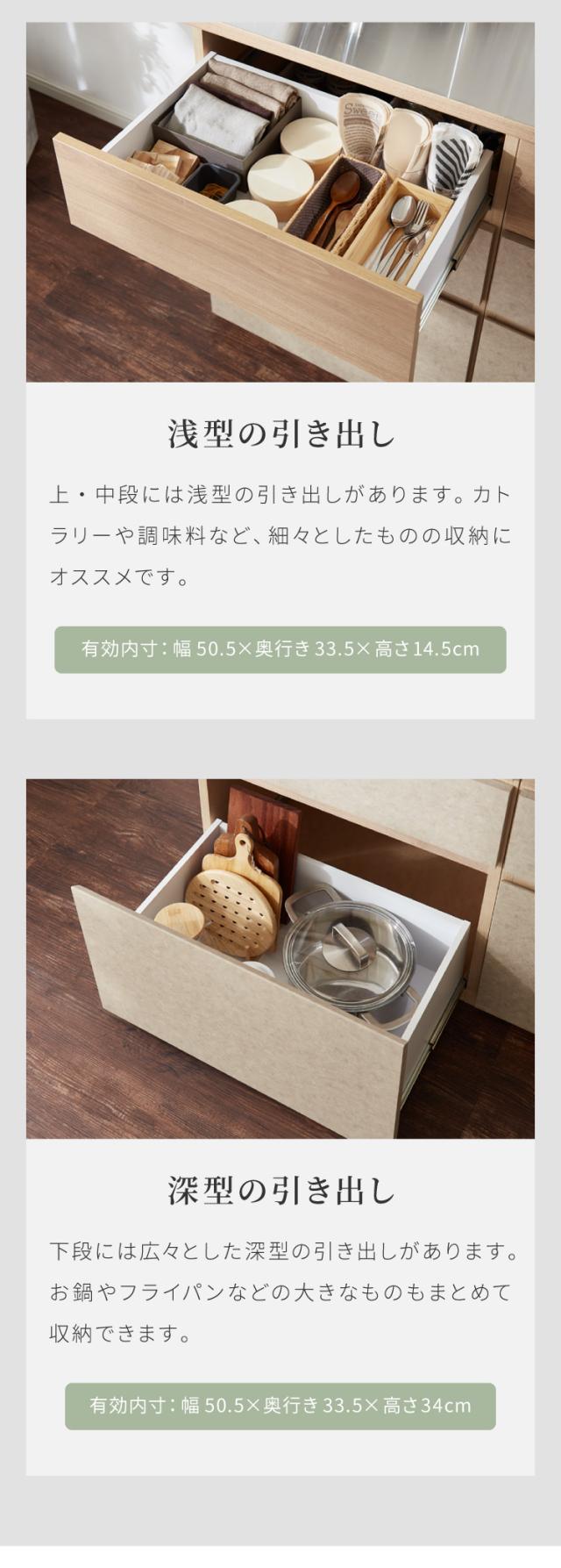 引き出し:幅50.5×奥行33.5×高さ9.5cm(有効高さ14.5cm)