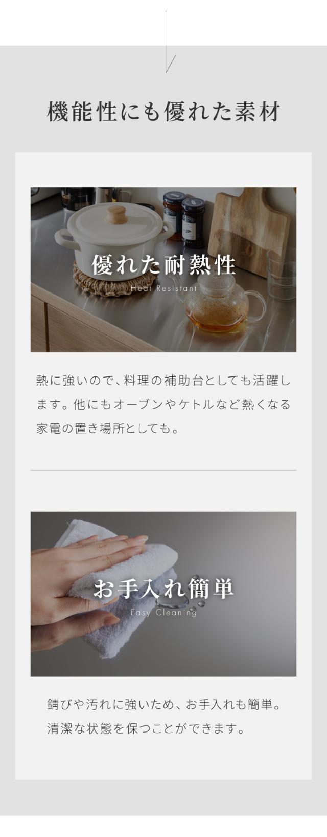 天板には、耐久性や耐熱性に優れたステンレスを使用。