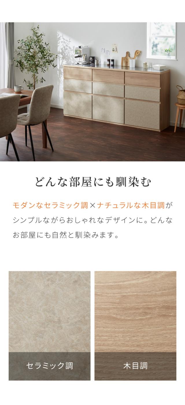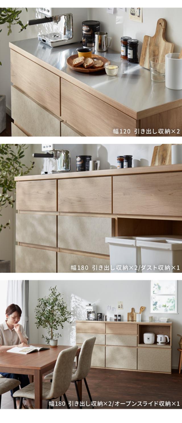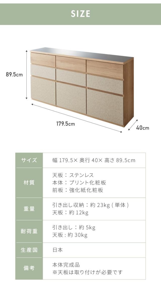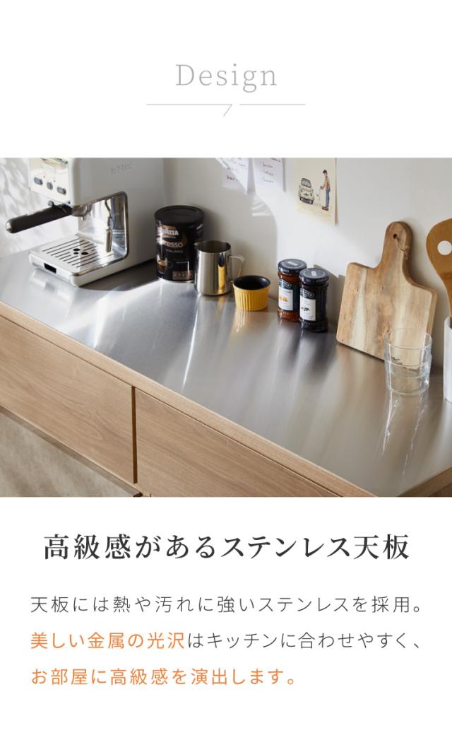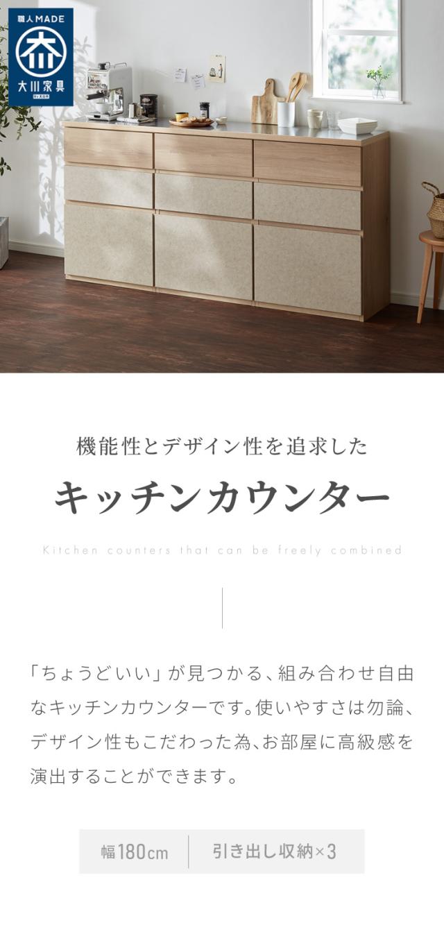 キッチンカウンター 幅180 完成品 日本製 引き出し ステンレス 天板 キッチンラック キャビネット サイドボード モダン ナチュラル セラミック調 国産 大川家具(代引不可)【送料無料】