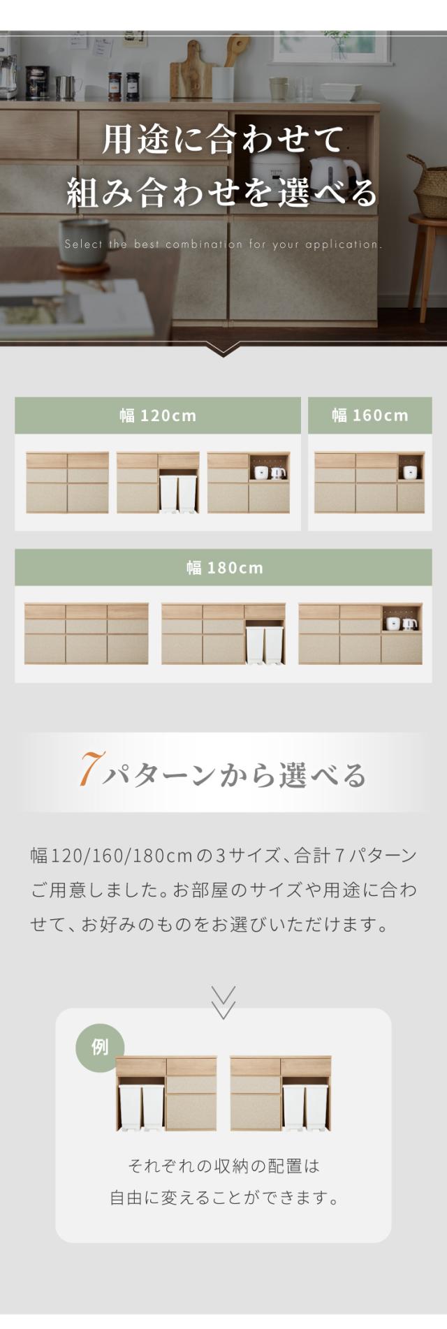 幅120/160/180の3サイズ、合計7パターンの中からお選びいただけます。