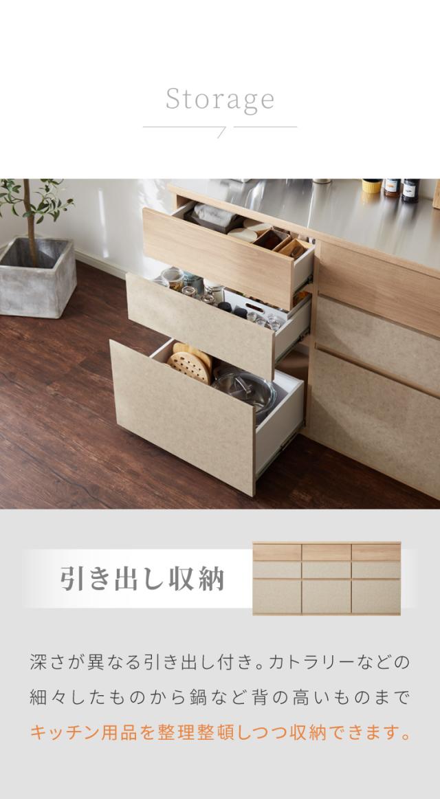 幅180cm/引き出し収納×2/レンジ台×1