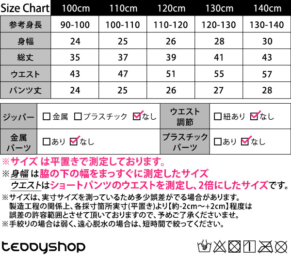 ウエストはショートパンツのウエストを測定し、2倍にしたサイズです。