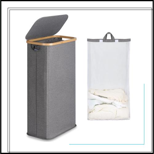 ?【組み立て簡単&インナー袋付き】洗濯かご 折りたたみ幅は僅か22cm。隙間に収納でき、省スペース。日本語取扱書が付き女性やお子様でも楽に組み立てることができます。インナーバッグは付属しており、洗濯かごから簡単に取り外して持ち運ぶことができる。インナーバッグは洗濯機で洗えます。 汚れた洗濯物に触れることなく、インナー袋を取り出すことができます。洗濯かご ランドリーバスケット 折りたたみ スリムランドリーバスケット容量63L フタ付き 竹製フレーム 折りたためる 防水 洗濯かご おし