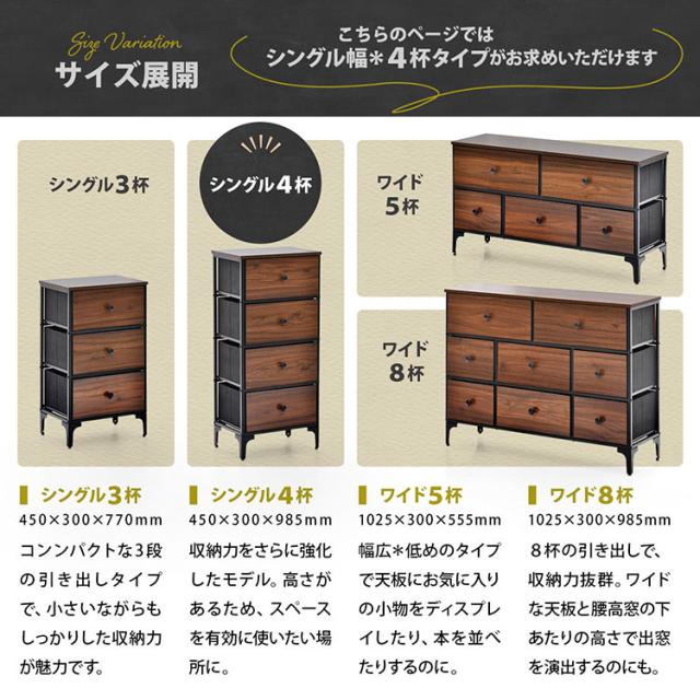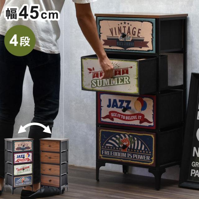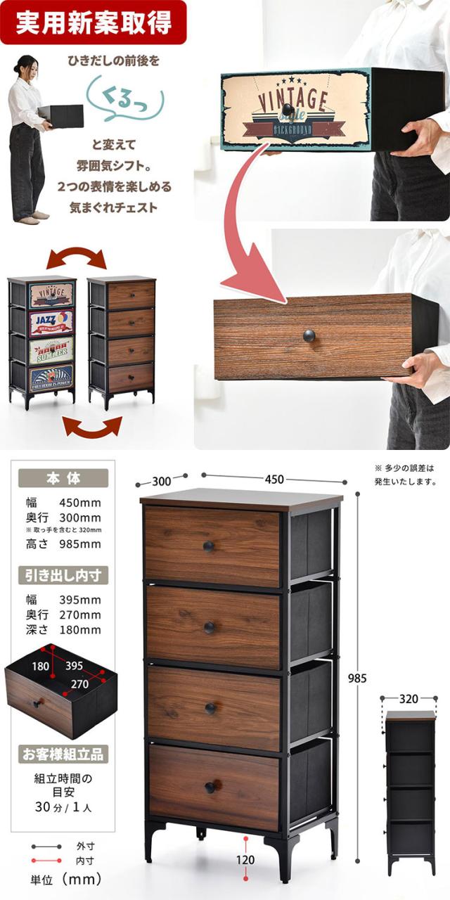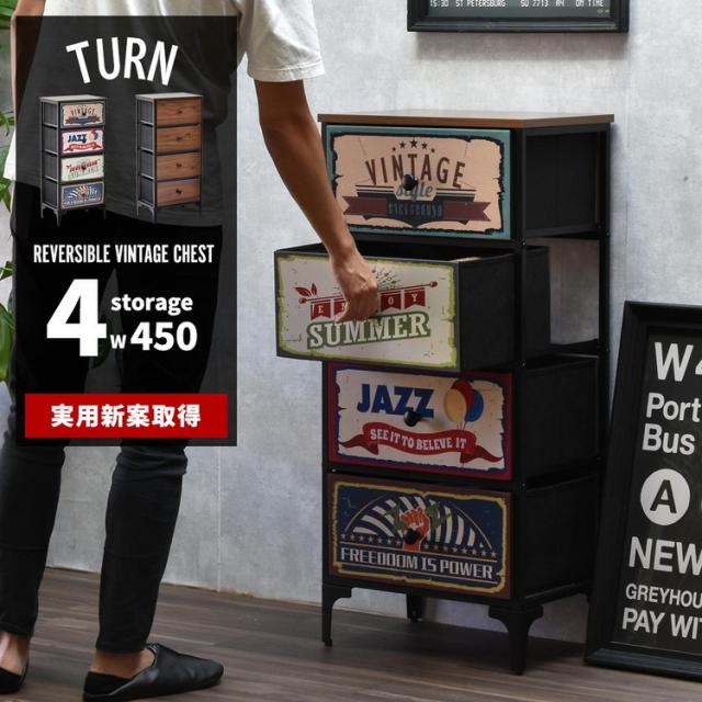 ターンチェスト 4段 Reversible Vintage ターンチェスト 4段 リバーシブル前板×アメリカンヴィンテージ風収納リバーシブルチェスト ヴィンテージ調収納【送料無料】