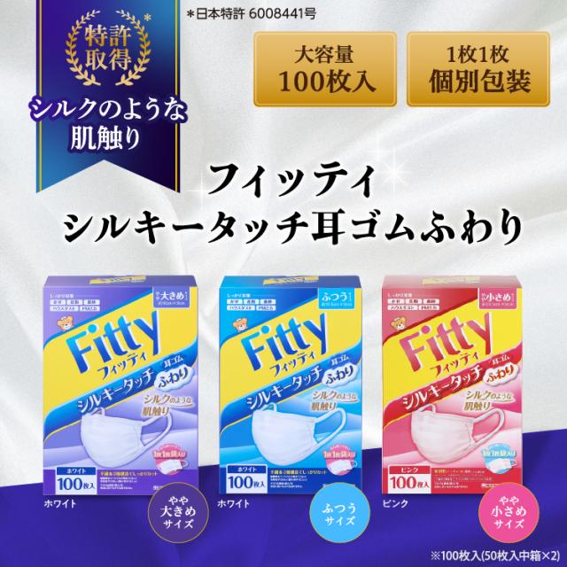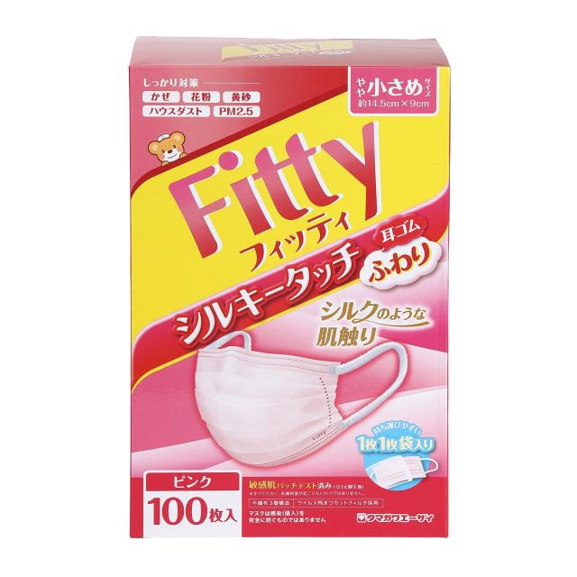 マスク フィッティ 不織布 やや 小さめ 個包装 プリーツ 100枚入 シルキータッチ 耳ゴム ふわり ピンク かぜ 花粉 黄砂 ハウスダスト PM2.5