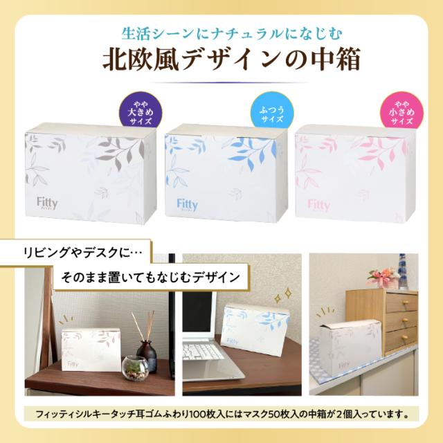 ・耳ゴムは長時間の着用でも耳が痛くなりにくい幅広ふわふわゴムです。