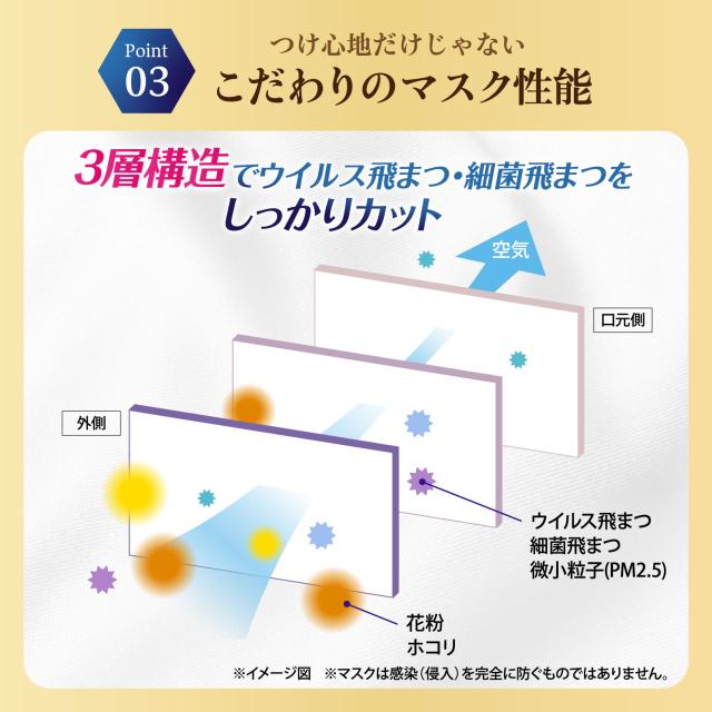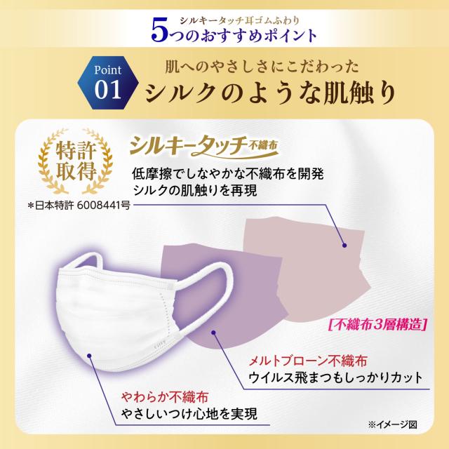 採用することによって、肌触りがやわらかく、心地よい着け心地のマスクです。