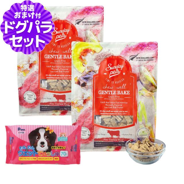 【沖縄以外送料無料】サンデーペッツ ドッグフード ジェントルベイク グレインフリー ビーフ ウィズトライプ 1.3kg×2個セット+わんわんウエットてぃっしゅ 1個