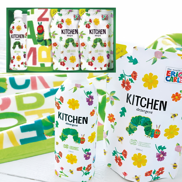 はらぺこあおむし キッチン洗剤セット 4セット H-20AZ キャラクター、可愛い、食器用、詰め替え、本体、グッズ、日本製、化粧箱入、プレゼント、ギフト、タオル、フェイスタオル
