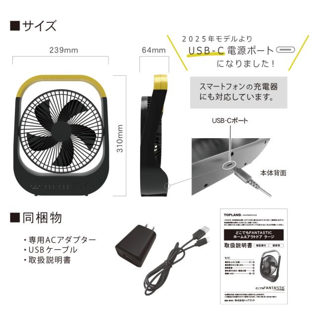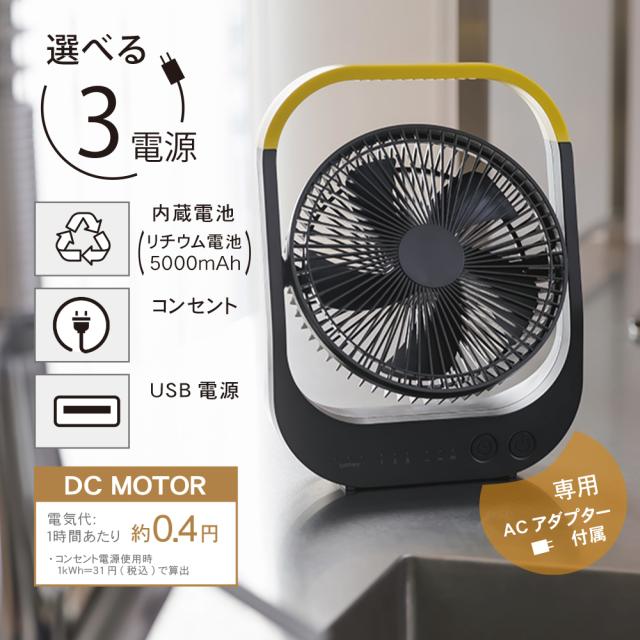 卓上扇風機 コードレス 静音 充電式 USB 給電 3WAY 電源 小型 ハンドル付き 家庭用 アウトドア用 持ち運び キャンプ BBQ オフィス 2025年モデル ブラック ブラウン SF-DFC39BK【トップランド 公式ショップ】